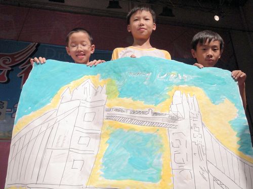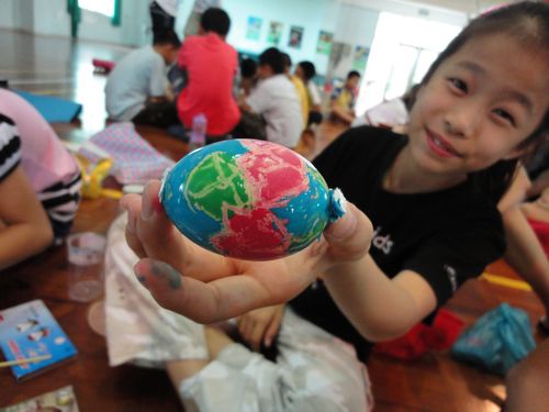 孩子们手中的那支画笔可以勾勒出怎样的梦?蛋壳上五彩的颜料又能表现出多少天真和机智? 5年级的孩子们在画纸上填充着“伦敦桥”之上的天空。旁边是一组正在做手工的孩子,大本钟的框架已经基本成型。在后面的一群孩子,正在仔细的涂画着手中的那只空蛋壳。在五彩的颜料映衬下,孩子们的梦想同样缤纷灿烂。