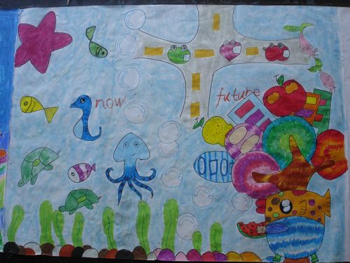 时间一分一秒过去,转眼间比赛用时已经过去50分钟,这时集体创作环节进入了收官阶段,各班代表队的上色工作亦已接近结束。六班代表队画作“now to future”吸引了众多老师的驻足欣赏。老师们都表示,该画作在本次大赛中确实十分抢眼,鉴于其出色的发挥,六班导师则对本班获的奖项非常有信心。