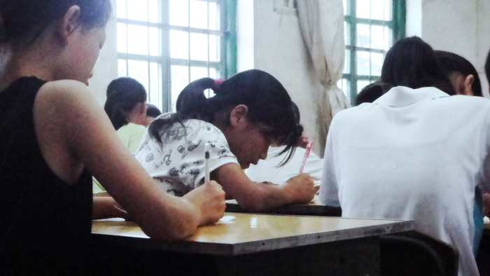 经过与学生的交谈,我们了解到学生并不喜欢这种枯燥又难懂的学科,排斥数学的程度非常高,还没开始上课,同学们就表现出了沮丧的神情。义教队员不断强调义教进行的是趣味数学,与平时课程不同,但仍不能引起学生的兴趣。这一点让义教队员十分担心第一节数学课是否能顺利进行。