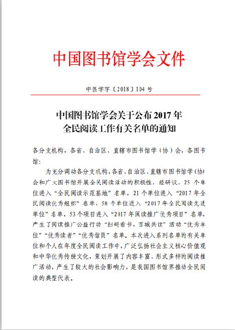 伟德bv国际体育图书馆2017 年阅读推广优秀项目
