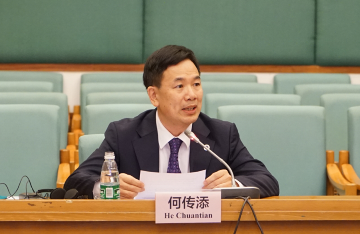 何传添对沙特知识交流中心代表团的来访表示欢迎,并就“一带一路”的内涵、愿景、作用作了简要介绍。他指出,“一带一路”是要继承与发扬丝绸之路精神,其内容和意义主要包含两点,即“一带一路”是破解人力发展难题的中国智慧和中国方案和“一带一路”是探索全球经济治理新的治理模式、构建人类命运共同体的重要路径。“一带一路”是和平繁荣创新之路,必将造福于沿线各国人民,深化五通是“一带一路”的关键支撑。