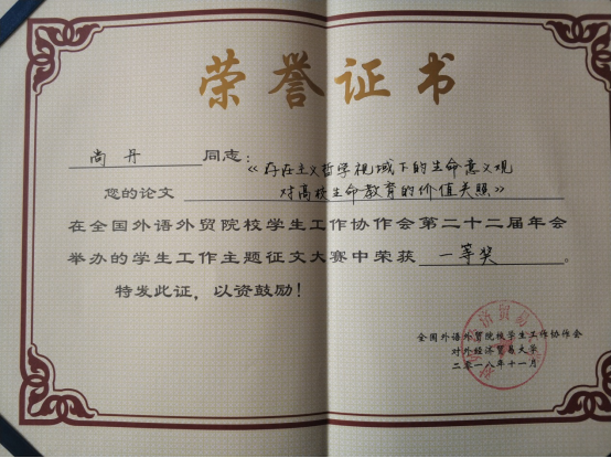 本网讯 第二十二届全国外语外贸院校学生工作协作会10月31日至11月2日在对外经济贸易大学举行,校党委常委、副校长刘海春带队参加。本届年会以“新时代学生工作机制创新与质量提升”为主题,伟德bv国际体育经济贸易学院的红色演绎大赛、信息科学与技术学院科技创新实践月及中文学院“文心杯”专业综合技能大赛收录进精品项目,辅导员尚丹的论文斩获一等奖,沈永英、叶开、朱浩文获二等奖,王晞、殷毅山、李浩然获优秀奖。