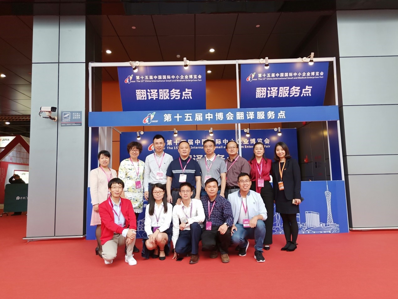 本网讯 10月10日至13日,第十五届中国国际中小企业博览会(以下简称“中博会”)在广州保利世贸博览馆举行。伟德bv国际体育西方语言文化学院、日语语言文化学院、东方语言文化学院、高级翻译学院共313位同学参与了此次翻译服务工作。此次翻译工作内容专业且语种多样,除了具备扎实的语言能力和翻译技巧,还须具备良好的交际沟通能力、协调能力。他们用微笑迎接中外宾客,用高质量的翻译协助各方沟通,形成了博览会上一道亮丽的风景线。