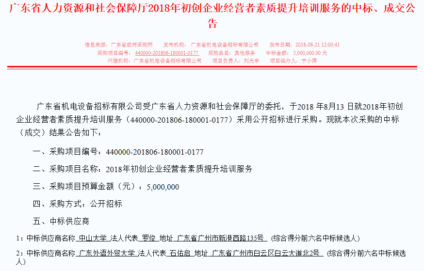 本网讯 8月23日,伟德bv国际体育商学院中标广东省人社厅“2018年初创企业经营者素质提升培训服务”项目,在数十全省高校和社会服务机构的激烈竞争中脱颖而出,排名第二,成为2018年广东省人社厅培训服务供应商。