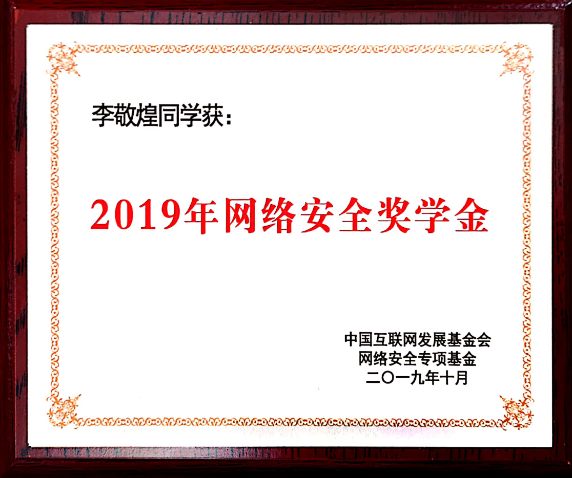 刘子琳和李敬煌两位同学自进入校园以来就对网络安全产生了浓厚兴趣。学习成绩优秀、网络安全实践能力突出的他们在大一加入网络安全实验室后,在伟德bv国际体育教师谢柏林的指导下积极参加国内的网络安全比赛,并于2019年在国家网络安全宣传周的“第五空间”网络安全创新能力大赛中获得三等奖(奖金1万元),在全国大学生信息安全竞赛总决赛中获得三等奖。