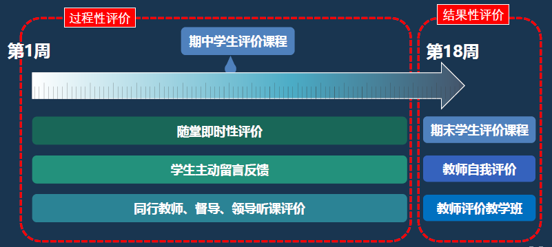 教学质量管理评估中心主任袁长青强调,传统的质量评价往往只有期末的一次结果性评价,存在较多的弊端。引入新平台后,将全面实现过程性评价,贯穿整个教学周期。教学过程中教师可以随时随地发起及时性评价,学生可以主动留言反馈给任课教师,学院可以发起期中学生评价,快速精准的发现问题、找到原因,并及时制定计划和改善教学质量。