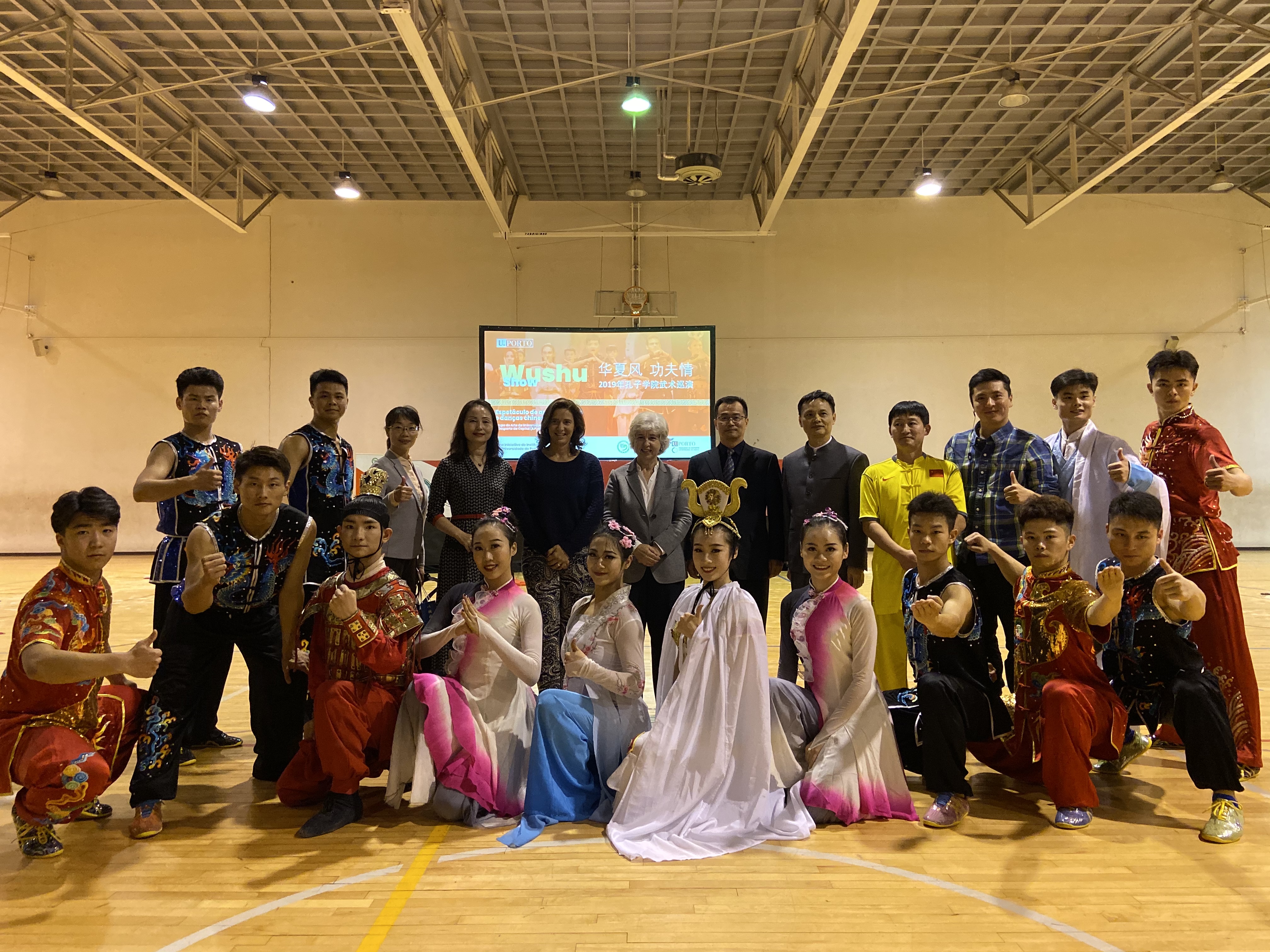 本网讯 10月19日晚,由孔子学院总部主办、波尔图大学孔子学院和首都体育学院联合承办的2019年“华夏风,功夫情”武术巡演欧洲行活动在葡萄牙波尔图市隆重举行。波尔图大学两位副校长Maria Fernandes和Juana Carvalho及孔子学院中方院长易宗勇等参加活动,来自波尔图大学的广大师生、波尔图地区的武术爱好者和当地华侨华人等数百人观看表演。