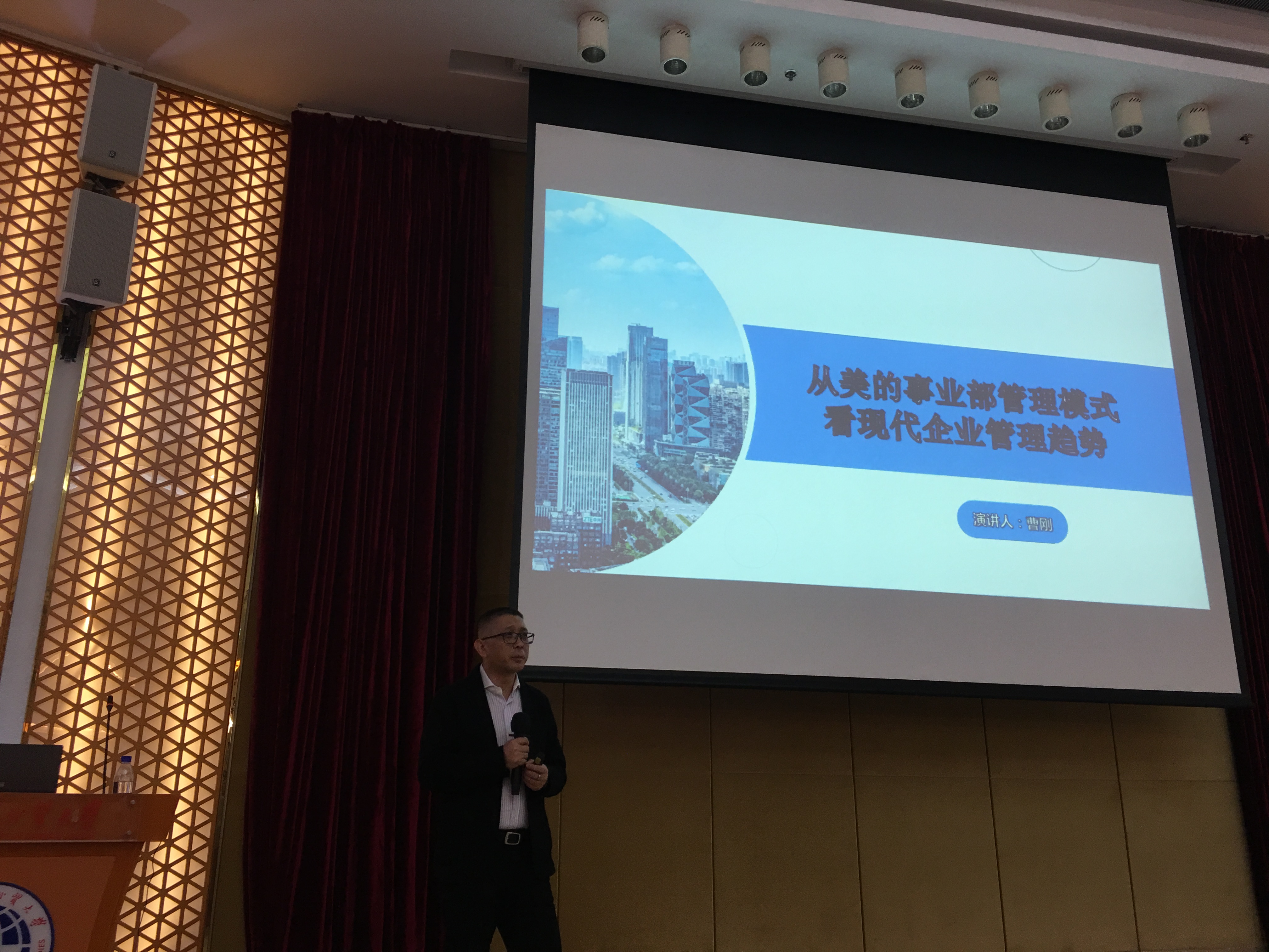 曹刚以“从美的事业部管理模式看现代企业管理趋势”为主题展开讲座,希望同学们对企业管理体系与未来工作创业等有所认知。他梳理企业管理发展路径与不同阶段,讲述了美的集团从1968年初创期到现代企业管理模式的发展特点与未来发展趋势。他指出,管理创新与组织体系变革,必须适应企业不同的发展阶段,管理要做到“分权有序”、“授权有章”、“集权有道”。
