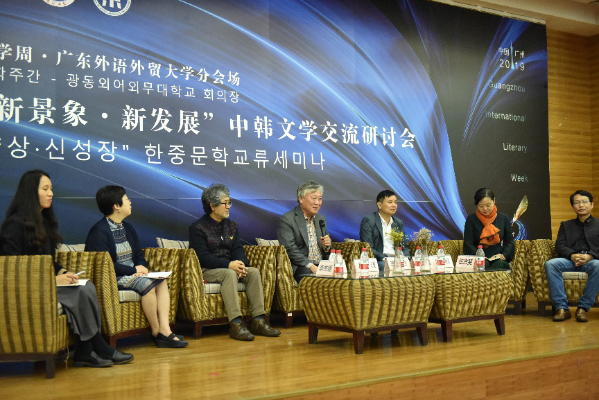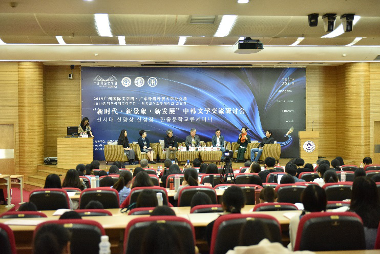 本网讯 近日,“2019年广州国际文学周”——“新时代·新景象·新发展”中韩文学交流研讨会在伟德bv国际体育北校区图书馆报告厅举办。研讨会围绕“新时代以来中韩文学发展的新现象、新特征和新趋势”和“新时代以来中韩文学作品互译出版的现状和展望”两个议题展开讨论。来自中韩两方的作家、诗人、学者,伟德bv国际体育副校长焦方太出席会议。