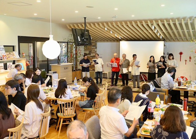 接着,入门班的学生上田彩子、平田理佳以及三宅和男三人一起走上台前,为大家带来了会话朗读。三人的朗诵让在场的每一个人都感受到他们的努力与进步,尤其是三宅和男富有感情的朗诵更是赢得了大家热烈的掌声。而中级班的山本敏子则给大家讲述了如何跟汉语结缘的故事,在随后的问答环节里,其准确流利的回答也引得在场观众们啧啧称赞。