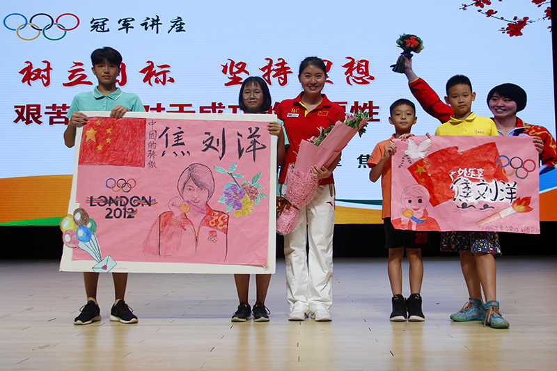 在提问环节,对于学员们提出的“如何从北京奥运会的第二名到伦敦奥运会的第一名”、“决赛中是怎样从落后到反超取得冠军的”等问题,焦刘洋一一作出回答,并鼓励学员们在学习中也要给自己设定学习目标,努力实现目标,享受成功时的喜悦。
