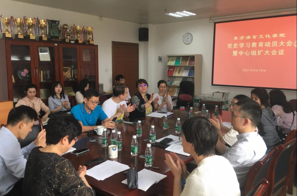 本网讯 3月18日,东语学院召开党史学习教育动员大会。党委书记赵烨对党史学习进行部署安排,并以“党章的历史沿革”为题做专题讲座,会议由学院党委副书记、院长刘志强主持。学院全体领导班子、系部主任、党支部书记等参加会议。