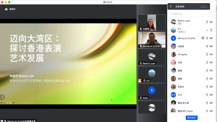 6月18日,讲坛举行第三场讲座。现任香港中文大学文化管理硕士课程专业顾问及主任、戏剧学博士林国伟为湾区师生们作题为“探讨香港表演艺术发展”的专题演讲。林国伟从香港演艺“九大团”引入,介绍了香港政府对演艺团体的资助管理体制,提出香港演艺团体目前存在的生存发展挑战,就香港演艺整体发展现状、对大湾区演艺融合的探索等问题提出了看法与参考。在提问环节,林国伟就澳门演艺状况和与葡语国家的演艺合作、香港演艺团体与内地的交流、香港文化发展前途等话题与师生进行探讨。