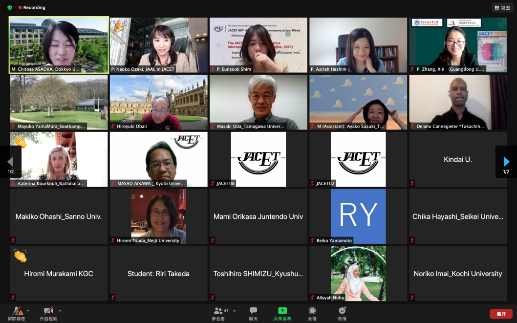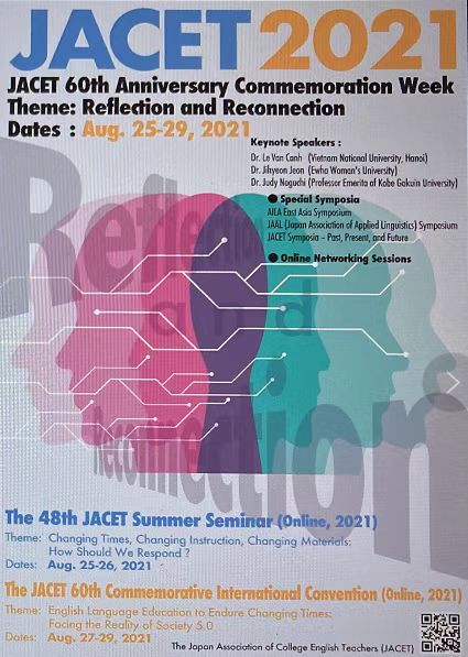 据悉,国际应用语言学学会东亚论坛创设于2014年,每年由中国英汉语比较研究会英语教学研究分会(CELEA)、日本大学英语教师协会(JACET)、韩国应用语言学学会(ALAK)三个学会轮流举办,以加强区域学术交流。作为2021年论坛的主办方,日本大学英语教师协会迎来了成立60周年纪念日,为此举办了主题为“反思与重接”(ReflectionandReconnection)的60周年纪念周活动。本届国际应用语言学学会东亚论坛是JACET60周年纪念性国际大会的特殊研讨会环节,是东亚地区推动英语专业发展的一场充满意义的学术交流。