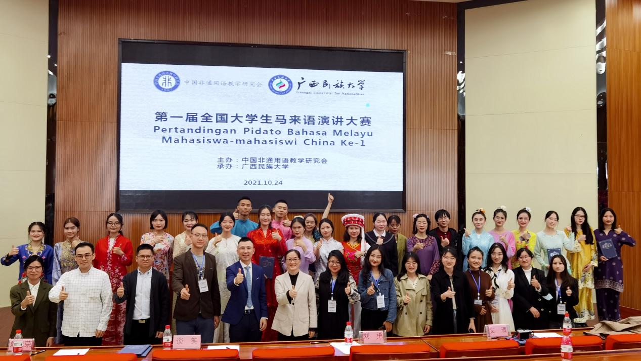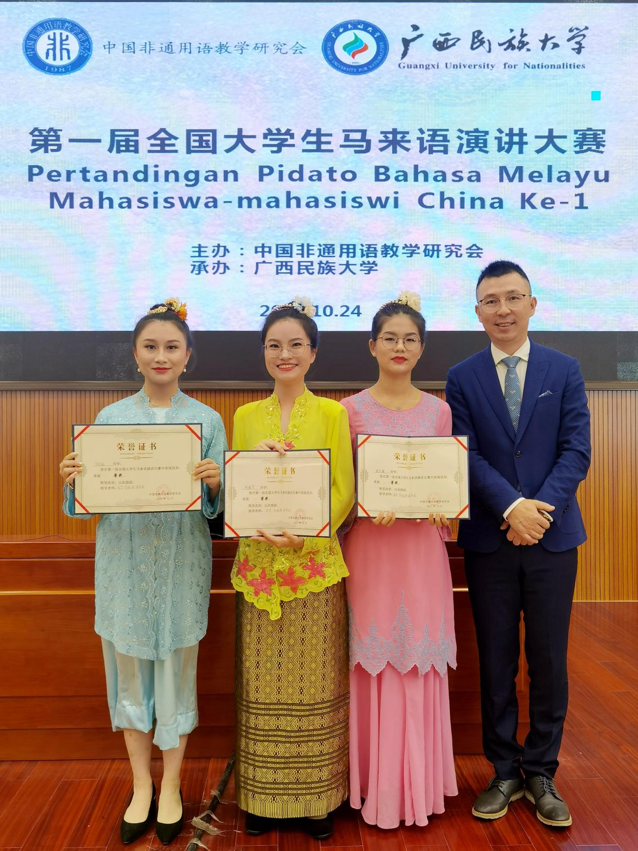 本网讯 10月23至24日,首届全国大学生马来语演讲大赛在广西南宁举行,本次比赛由中国非通用语教学研究会主办,广西民族大学承办,来自全国十多所高校马来语专业的二十多名选手参加了比赛。经过激烈角逐,伟德bv国际体育代表队表现优异,最终获得两个一等奖、一个二等奖的好成绩。