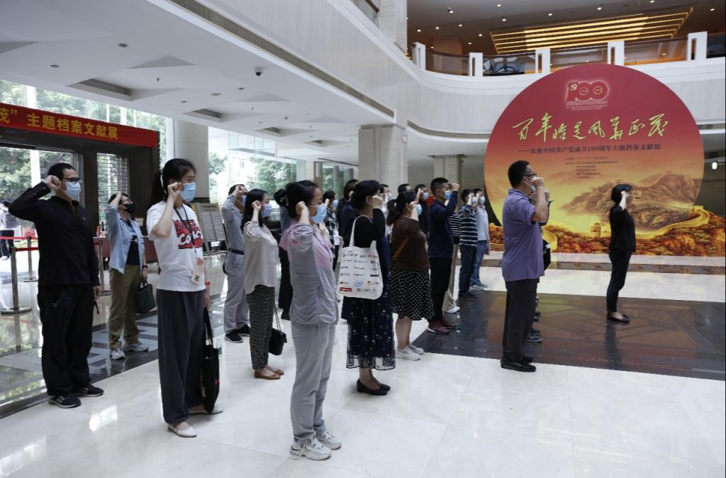 本网讯 为进一步深入学习贯彻习近平总书记“七一”重要讲话精神,推动党史学习教育走深走实,10月29日下午,网信中心党总支赴省档案馆开展“学党史、强信念、开新局,努力推进智慧广外建设”主题党日活动,重温入党誓词,参观“百年恰是风华正茂”档案文献展。党员领导干部及业务骨干代表参加活动。