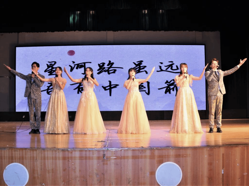 第一篇章“旭日初升”,法学院歌队为观众们带来《太阳》和《我爱你中国》串烧节目,传递出了学子对弘扬中华光荣传统、赓续红色血脉的积极态度,寄托了他们对祖国未来的希望,也表达了他们爱国的炽烈情感,声声入耳,深入人心。舞蹈表演的《青春向党,舞动人生》青春洋溢,活力十足,同学们用灵动活泼的舞步展现出了广外学子的青春活力。