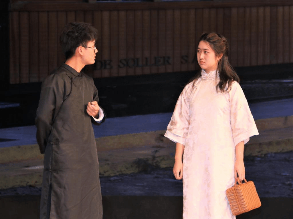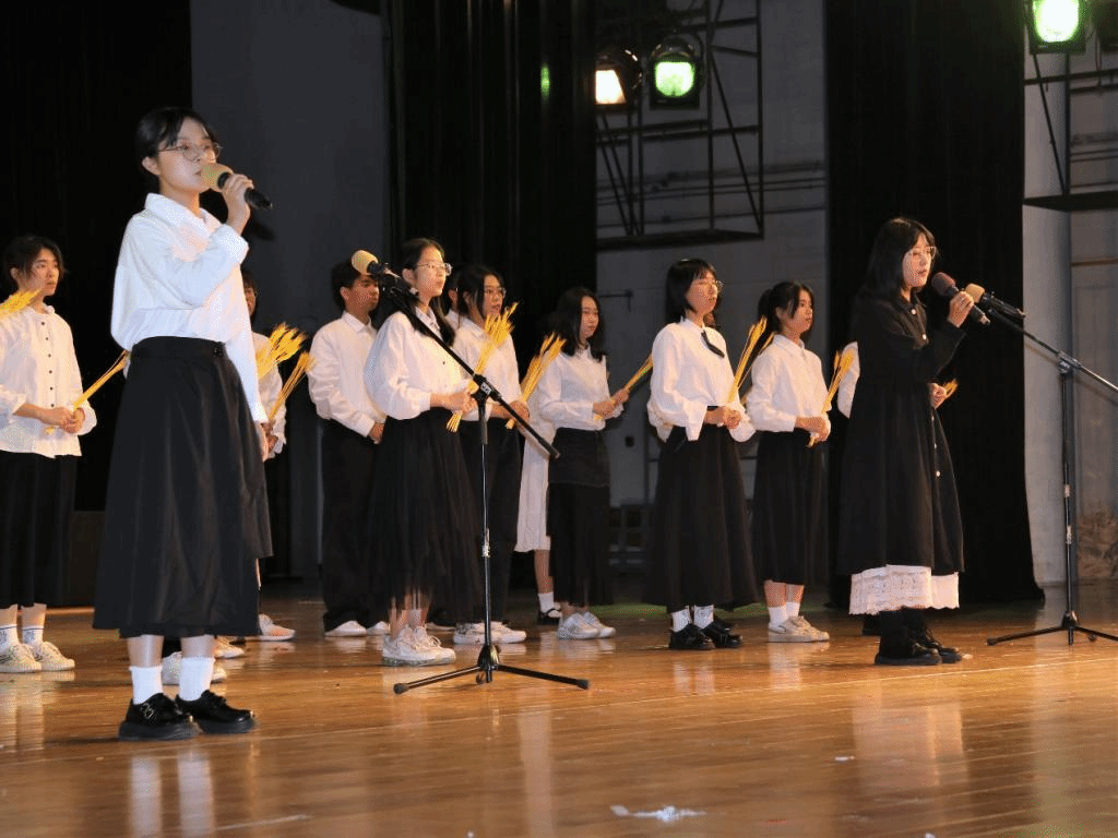 第二篇章“奋楫前行”,话剧队带来表演《青春赞歌》,表演者用精彩生动的演绎,为我们讲述了一个党员从开始了解中国共产党,到立志加入中国共产党,最后为党的事业壮烈牺牲的感人故事,谱写了一曲青春赞歌。国经法2001班的全体同学带来合唱歌曲《稻香少年》,杯子击打的鲜明节奏与同学们悦耳的歌声相互融合,“随着稻香河流继续奔跑”便是对“乡村振兴,人民幸福”这一美好图景的生动描绘。歌曲带领观众们走进愉快的生活,同时也告诉观众们珍惜时光,珍惜这来之不易的生活。