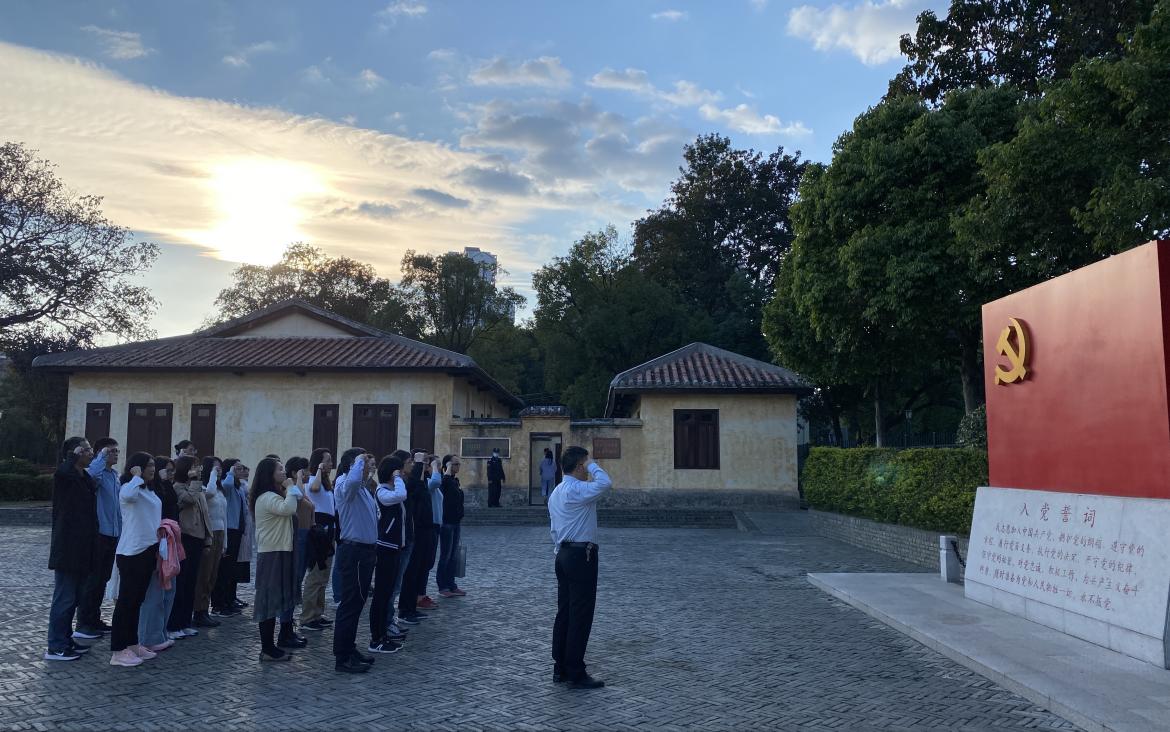 中共粤北省委旧址位于韶关市浈江区五里亭良村,粤北省委是抗战时期共产党在粤的重要机关,伟德bv国际体育前身之一广州外国语学院首任院长、党委书记饶彰风同志于1941年春任粤北省委统战部部长。在陈列馆里,通过现场讲解和多样化的数字展示,党员们回顾了中国共产党的百年光辉历程,在学院党委书记李和民的带领下,党员们重温入党誓词。