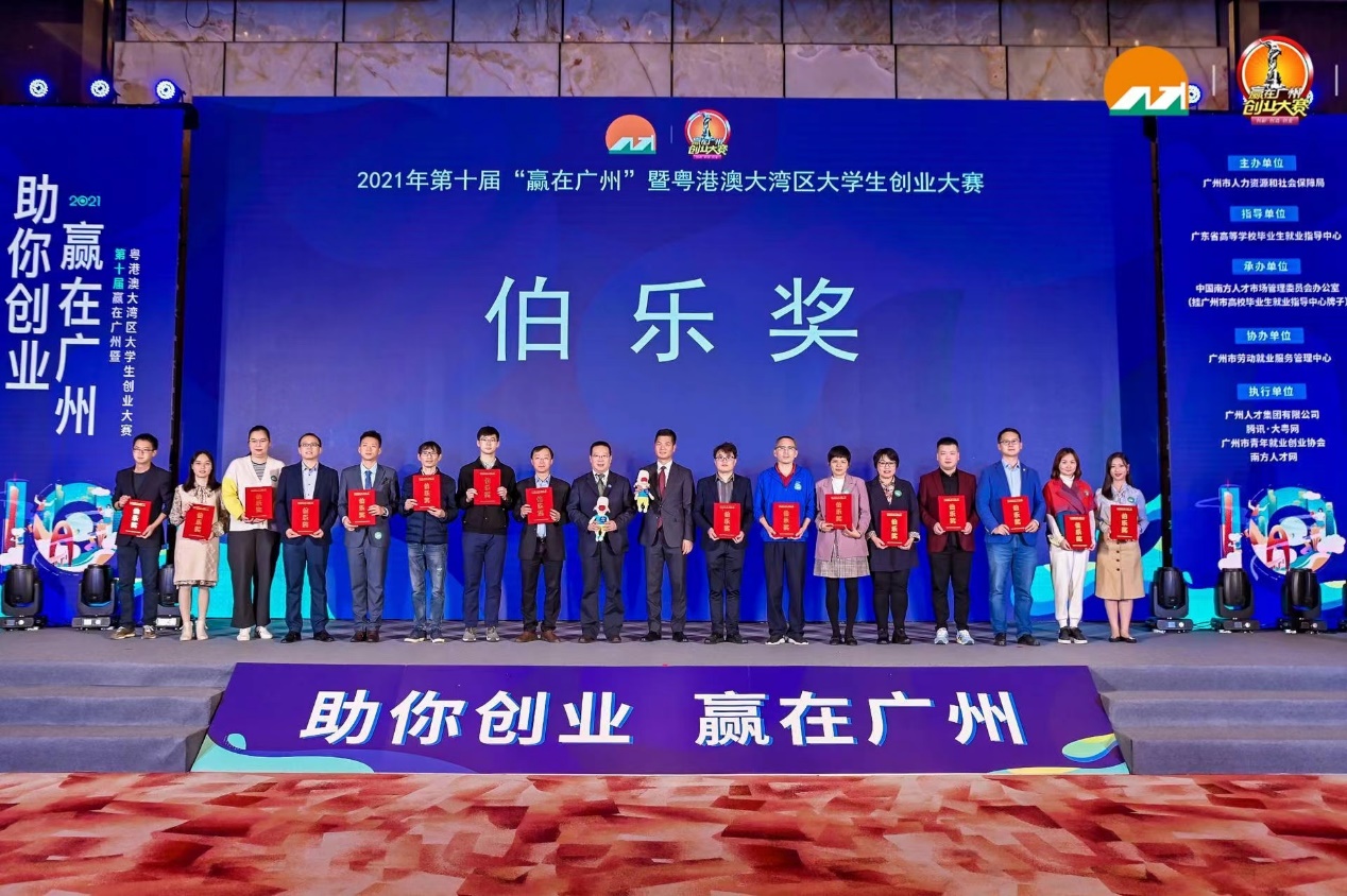 创新创业教育学院常务副院长康为茂和学生团队代表参加颁奖仪式。“赢在广州”大学生创业大赛是由广州市人力资源保障局主办,中国南方人才市场管理委员会办公室承办的华南地区青年创业赛事,旨在贯彻落实党的十九大关于创新创业决策部署,深入推进粤港澳大湾区建设,激发大学生创新创业热情,扶持大学生投身创业实践,促进创业项目与政策、服务、资本的有效对接。大赛举办十年来,覆盖粤港澳地区近150所高校,累计超过7万个大学生创业项目参赛。本届“赢在广州”暨粤港澳大湾区大学生创业大赛广东省共150多所高校超1万个学生创业团队参赛,经专家评审46个项目晋级决赛,伟德bv国际体育“木木科技”团队经过初赛、复赛、决赛等环节,获一等奖。大赛为全省150多所高校设置26个“赢在广州”十周年特别奖,康为茂代表学校领奖。