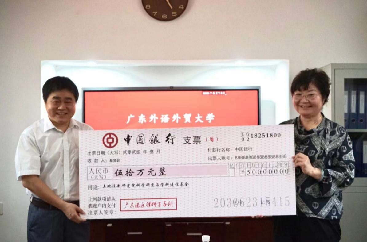 官选芸表示非常荣幸为广外土地法治研究院贡献力量。广外土地法制研究院成立于2016年6月,在土地法制研究领域取得了丰硕的成果,更是华南地区的佼佼者。广东诺臣律师事务所本次向广外土地法治研究所捐赠50万元用于科学研究与学科建设,官选芸表示希望以此为校企双方合作的起点,与伟德bv国际体育土地法制研究院携手共创粤港澳大湾区先进土地法制研究事业,也希望通过本次捐赠使公益助力科学研究受到社会上更多爱心人士的关注,众人拾柴火焰高。