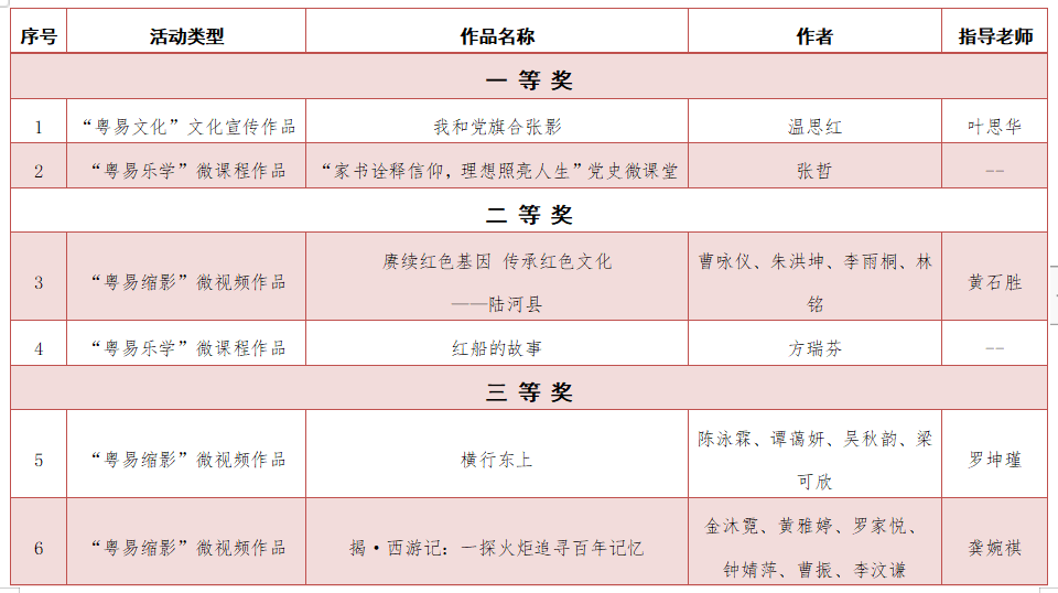 第六届广东高校网络媒体展示节获奖名单