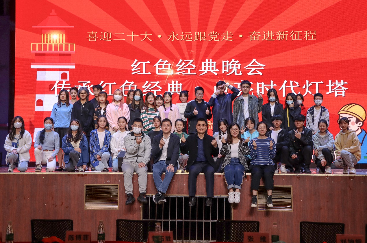 本网讯 近日,新闻学院通过线上线下相结合的方式举行“传承红色星火,点亮时代灯塔”为主题的红色经典晚会,新闻学子通过戏剧、朗诵等多种形式,演绎红色精神,传承红色基因。南校区学生活动中心现场设少量座位,七百多人通过视频号直播“云”观看。