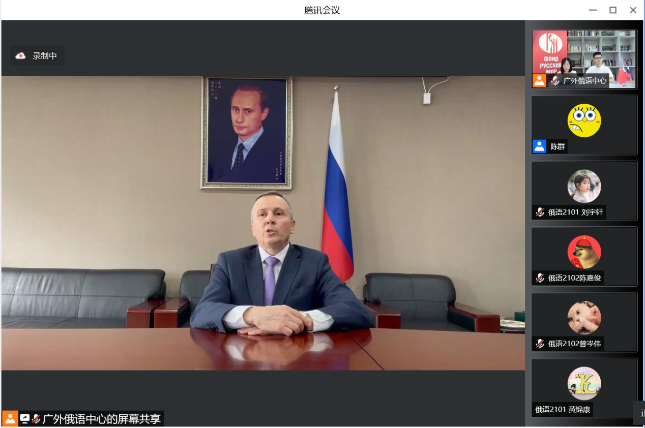 来自俄罗斯联邦驻广州总领事馆代表、北京俄罗斯文化中心代表、伟德bv国际体育,BETVICTOR官网、华南师范大学、厦门大学、海南大学、南昌大学、深圳北理莫斯科大学、广西科技大学、伟德bv国际体育,BETVICTOR官网南国商学院、广州外国语学校、佛山莘村中学等学校的150多名师生代表和其他俄语爱好者观看了线上直播。
