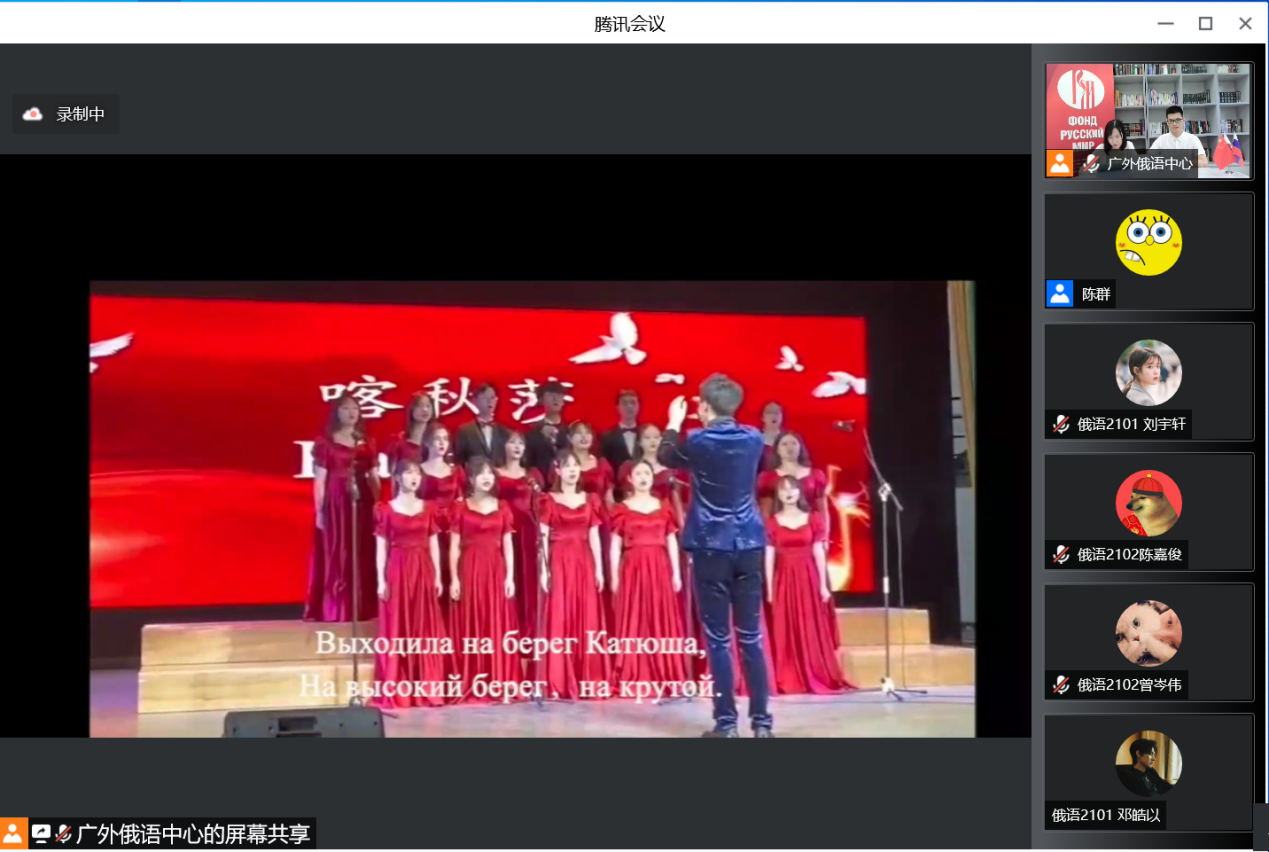 本次短视频比赛共收到来自广东、广西、福建、江西、海南等十余所高校和中学的近百个作品。所有获奖作品均在直播中展播。来自各院校的学生们为本届“俄语日”带来了精彩的节目表演。学生们采用合唱、诗朗诵、采访等表演形式展现了体育交流在传承中俄世代友好、推动中俄关系发展中的特殊内涵和重要作用。
