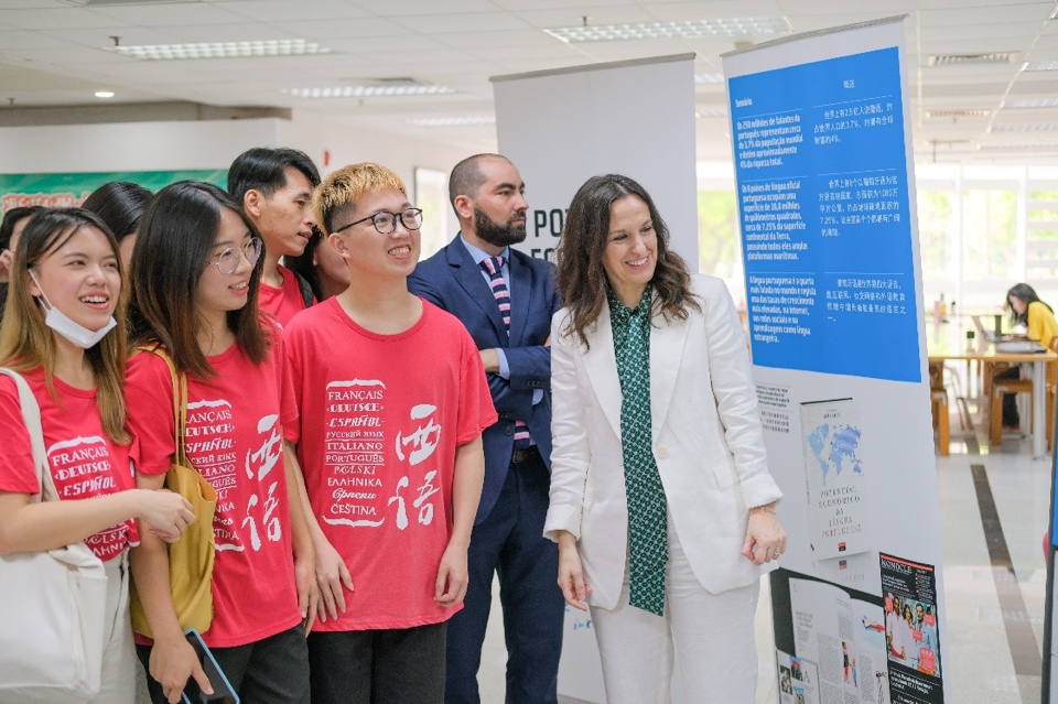 安娜·科尔代罗通过列举葡萄牙语的相关统计数据,强调了葡萄牙语的通用性以及背后的文化多样性。她特别提到了葡、巴、安三国驻广州总领事馆与广外合办的葡萄牙语征文比赛。比赛收到的90余份征文投稿,这是葡语在中国蓬勃发展的体现。她表示,葡中两国在教育领域取得了出色的合作成果,希望各方的合作能进一步加强联系两国的纽带。