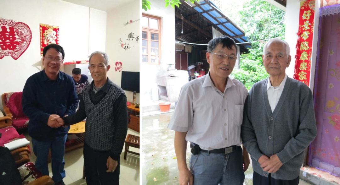 连州西岸东村发音人胡会权(左二),连城城关发音人赖石林(右二)、谢修文(右一)