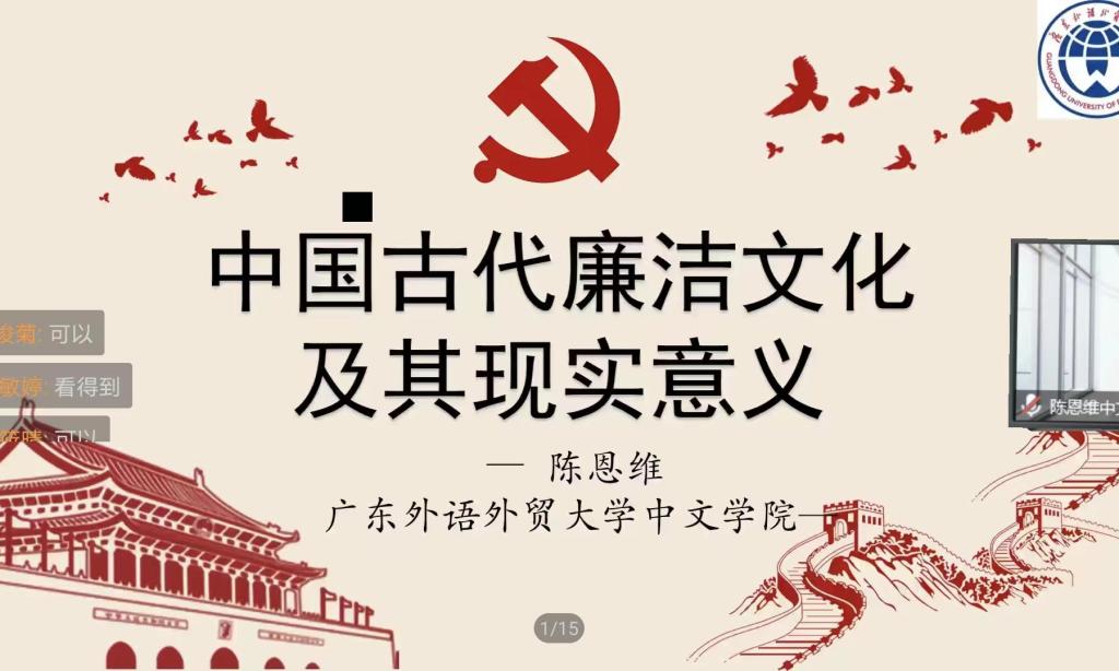 中文学院院长陈恩维为全体学员开展了以“中国古代廉洁文化及其现代意义”为主题的专题讲座。他从廉洁一词的起源、古代廉政制度、廉政思想的基础等几个方面阐述了“廉洁”的现实意义,并与同学们分享了不少具有岭南特色的与“廉洁”思想相关的故事,分析了廉洁文化在当代具有的重要意义。