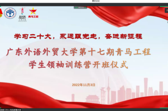 本网讯 为深入学习宣传贯彻党的二十大精神,落实习近平总书记关于青年工作的重要思想,在青年大学生当中着力培养一批敢想敢为又善作善成的青年学生领袖,近日,校团委举办了十七期线上青马工程·学生领袖训练营。校党委副书记唐锐,第17期青马工程学生领袖训练营全体成员出席开班仪式。