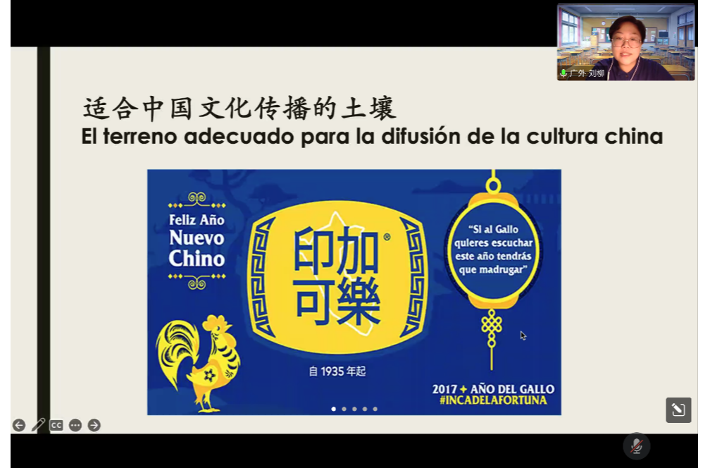 刘柳以“岭南非物质文化遗产在拉丁美洲的传播:历史、现状与展望”为主题,详细讲解了岭南非物质文化遗产的具体概念和范围,从历史、文化、人文条件等角度分析了它在拉丁美洲的传播,探讨了如今现状及未来发展的格局。