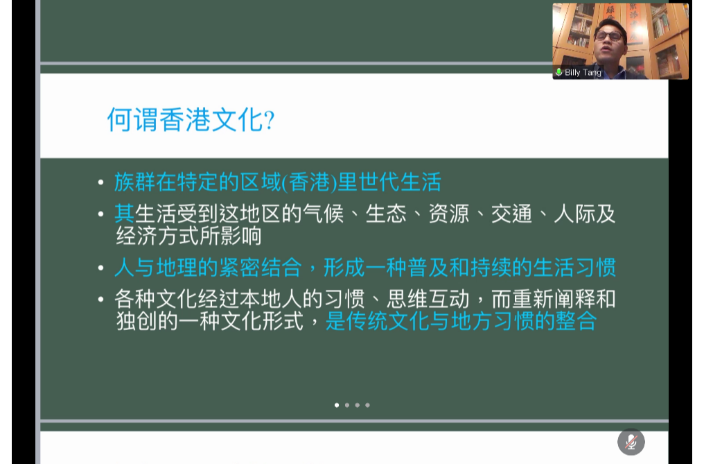 邓家宙围绕香港文化之吸收与传承为主题,以文化的定义引入,进而谈及香港文化的组成元素、海外文化的传入等方面,通过港式饮食等生动的例子,向大家展示了香港多元文化的特质和影响。