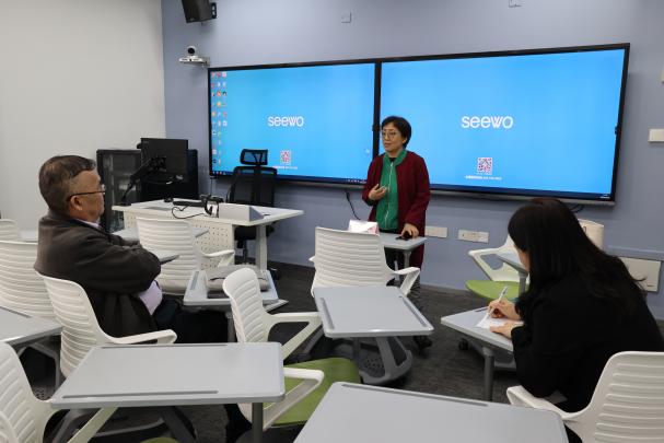 专家组在一教智慧教室,倾听英语教育学院与中国语言文化学院教师说课,对学院教师教育教学工作提出具有针对性的指导意见。在二教用于提升学生授课技能的微格实验室,调研实验室设备使用情况。专家组指出,大学应充分利用好智慧教室与微格实验室的技术资源,切实为学生提供高水平、高质量的课程实训实践平台。