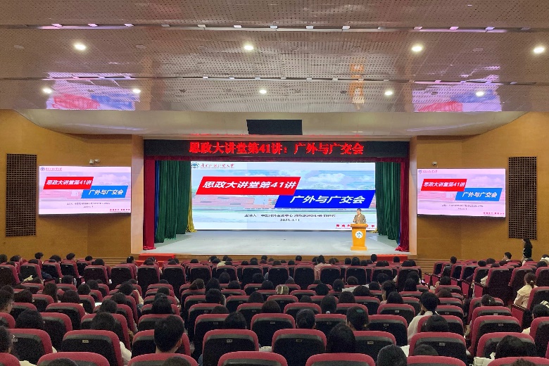 本网讯 4月11日下午,由学生工作部、教务部、校友事务与合作发展处联合主办的思政大讲堂第41讲在白云山校区六教报告厅举行。中国对外贸易中心对外联络处处长刘铨东(90级校友)回母校交流分享广外与广交会的故事。校党委副书记李云明会见刘铨东一行,伟德bv国际体育师生400余人参加报告会。