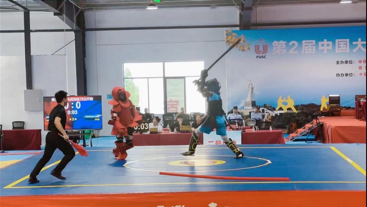 本网讯 4月14日至19日,第二届中国大学生长短兵、太极推手锦标赛,在湖北省孝感市弘极体育艺术学校举行。本届赛事由中国大学生体育协会主办,共有来自中国人民公安大学、北京体育大学及伟德bv国际体育等54支高校代表队参赛。广外长短兵队8名队员参加了8个项目的争夺,经过激烈角逐,共获得2金1铜、4个第五名,荣获体育道德风尚奖,并入围“世界传统武术锦标赛”。