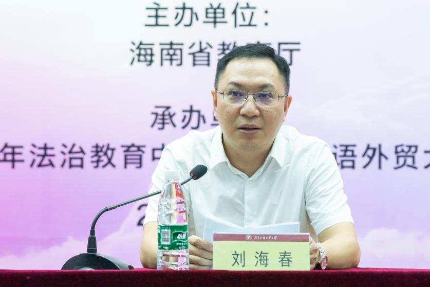 刘海春对伟德bv国际体育基本情况和青少年法治教育中心工作情况进行了简单介绍,强调要积极发挥伟德bv国际体育国际化特色、外语和法学优势,加强与海南合作,为推进海南校园法治建设和法治教育活动开展、培养更多海南优秀学子打好基础。