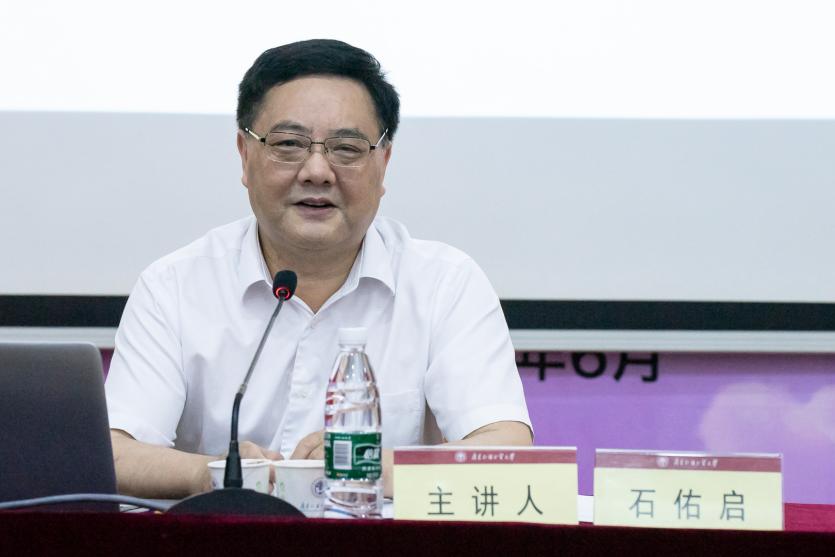 石佑启以“学习贯彻习近平法治思想 深入全面推进依法治国”为主题,运用生动语言、相关案例,从重大意义、核心要义、内在逻辑以及实践要求四个方面,对习近平法治思想进行了专题讲解。特别是对习近平法治思想中的“十一个坚持”,作了系统、全面、深入的解读,为全体学员上了一堂生动的法治教育课。