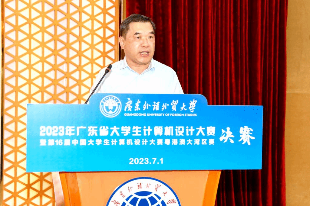 本网讯 近日,广东省教育厅主办的2023年广东省大学生计算机设计大赛暨第16届中国大学生计算机设计大赛粤港澳大湾区赛决赛在伟德bv国际体育,BETVICTOR官网大学城校区成功举办。广东省教育厅高等教育处副处长吴华明,伟德bv国际体育,BETVICTOR官网校党委常委、副校长焦方太出席开幕式并致辞。