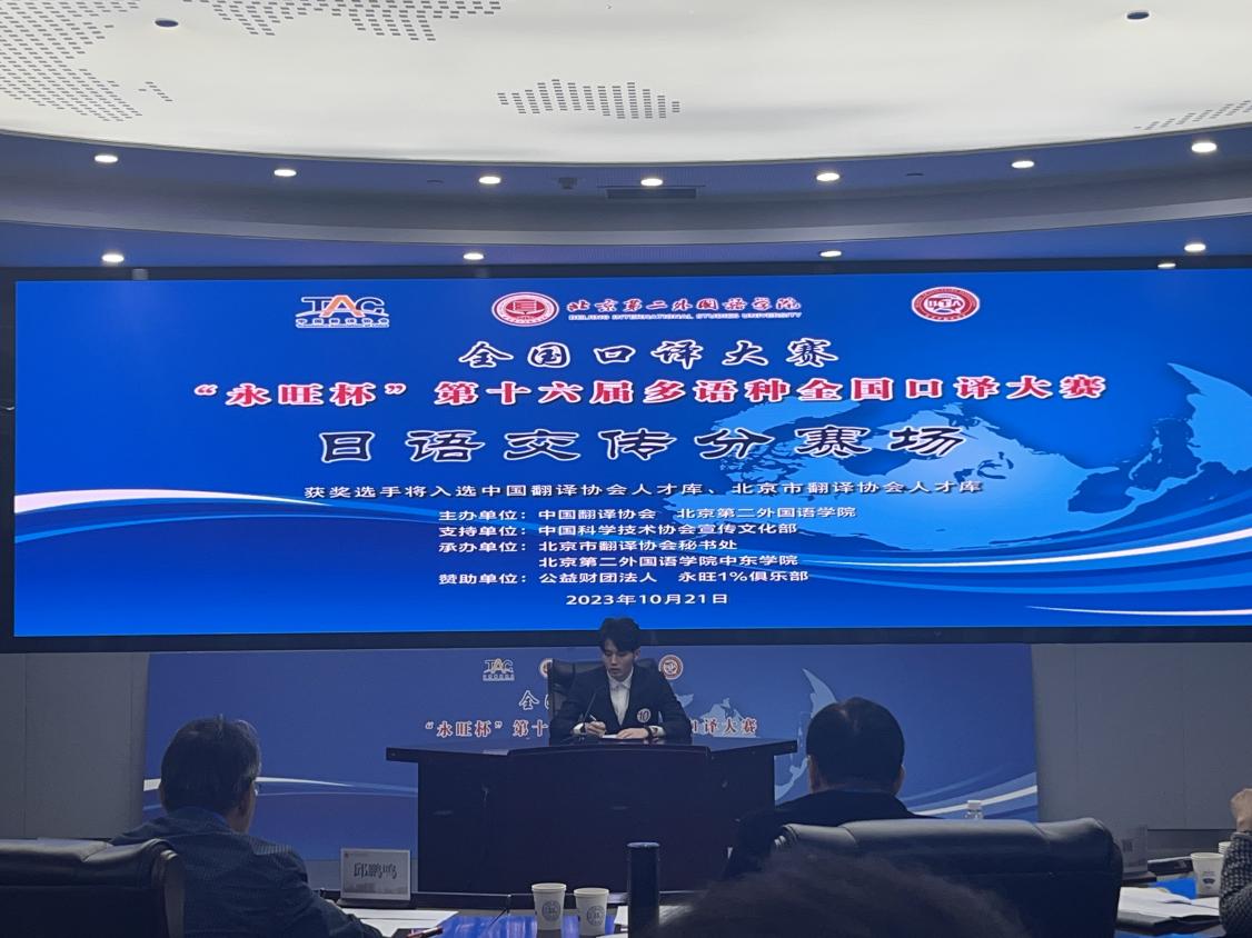 本网讯 10月21日,由中国翻译协会与北京第二外国语学院共同主办的“永旺杯”第十六届多语种全国口译大赛于北京举行。此次比赛中,伟德bv国际体育2022级日语翻译硕士生舒文俊同学荣获日语交替传译组一等奖,黎敏君同学获得日语同声传译组优秀奖。