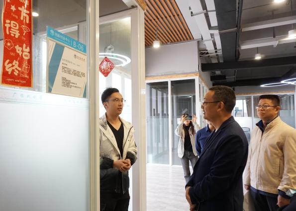创新创业教育学院副院长刘方龙副教授代表学院接待政协委员一行,教研室曹婷婷向调研组介绍国家级实践基地各功能区域。番禺区政协调研组一行实地考察伟德bv国际体育政协委员个人工作室运作情况,重点了解工作室日常接访群众、倾听社情民意情况。随后调研组走访国家级实践基地的入驻学生创业团队,并与“浪花智慧助老”“木木科技”团队进行交流。陈琨表示,政协委员工作室可以挖掘并发挥政协委员的优势及力量,结合大学城内学生创业就业情况,给予相对应的支持。来访政协委员们对广外创客敢于创新、勇于实践的精神给予了高度肯定。