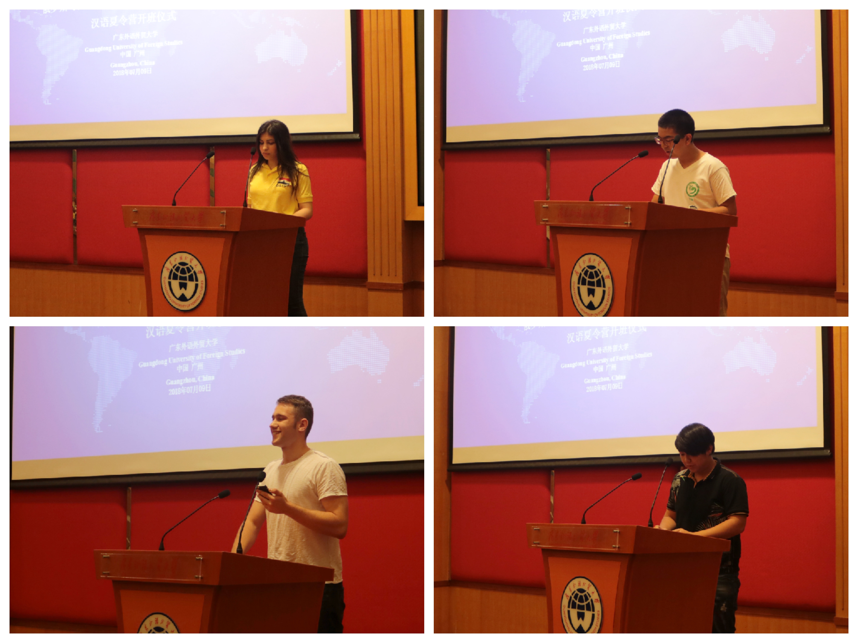秘鲁孔子学院学生代表伽利略,埃及孔子课堂学生代表亚拉,俄罗斯孔子学院学生代表阔丝佳,泰国曼谷大学学生代表陈瑞泽作为学生代表先后发言。