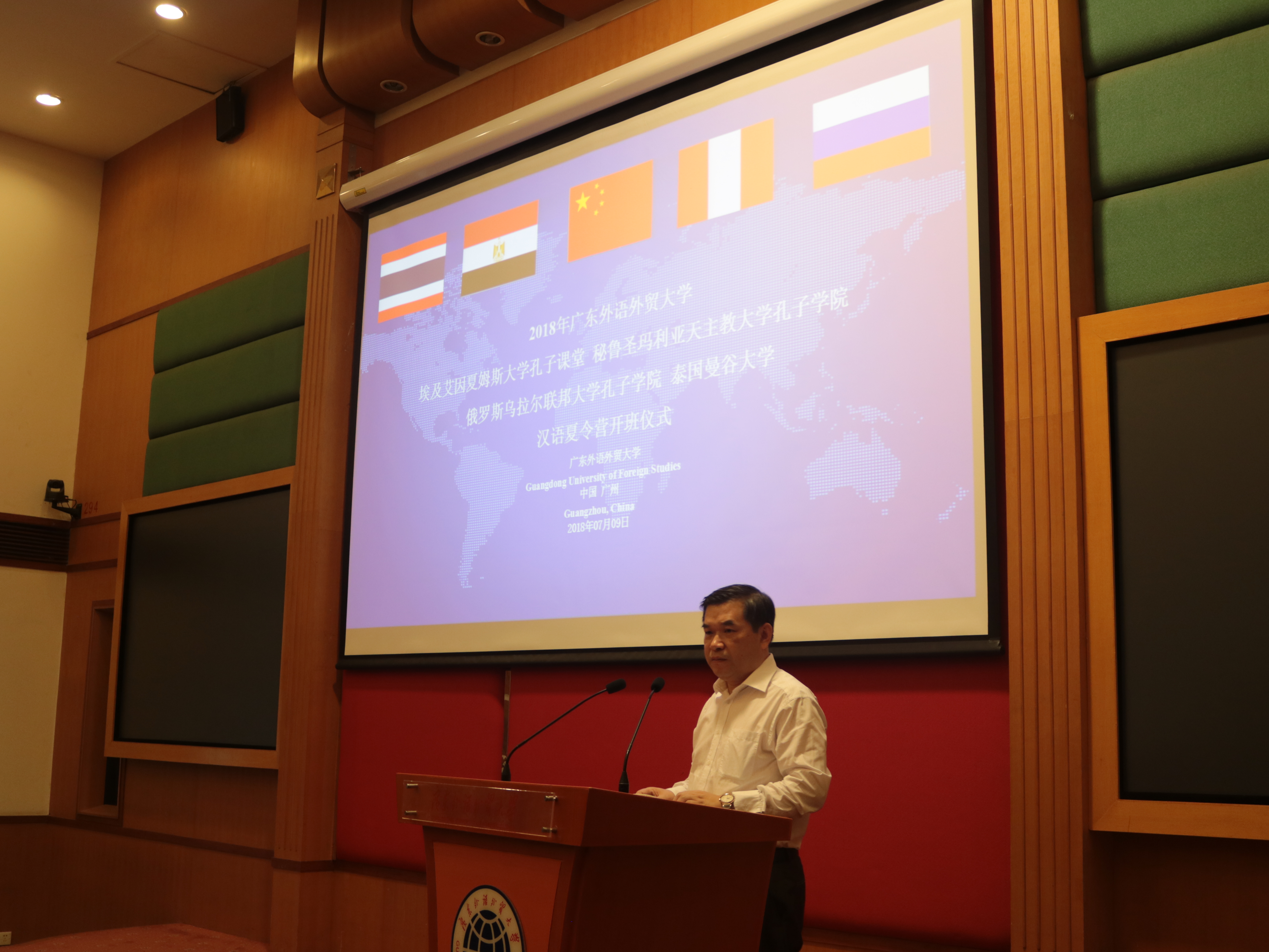 本网讯 7月9日上午,埃及艾因夏姆斯大学孔子课堂、俄罗斯乌拉尔联邦大学孔子学院、秘鲁圣玛利亚天主教大学孔子学院和泰国曼谷大学汉语夏令营开班仪式在伟德bv国际体育行政楼国际会议厅举行。本次夏令营迎来了四所友好院校的近80名海外师生。