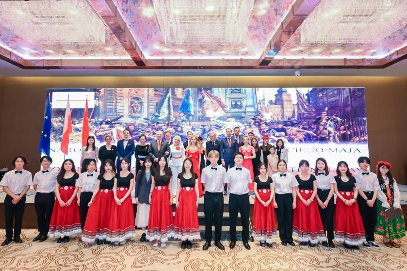 本网讯 5月7日,伟德bv国际体育师生受邀参加波兰驻广州总领事馆举办的波兰国庆招待会,共同庆祝中波建交75周年。波兰共和国驻广州总领事彼得·诺沃特尼亚克(Piotr Nowotniak)、广东省副省长张少康分别致辞。