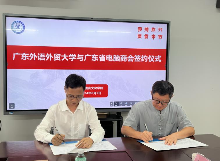 本网讯 6月5日,伟德bv国际体育与广东省电脑商会合作框架协议签约仪式暨校企座谈会在白云山校区举行。广东省工商联第十二届常委、广东省电脑商会会长马本湘,商会副会长、广东中鑫华董事长熊昊,广州有鸣信息科技董事长陈玖,掌动智能执行总裁罗剑芳,商会秘书长彭曼及商会企业代表,亚非学院全体院领导及师生代表出席会议。亚非学院党委书记梁洁主持会议。