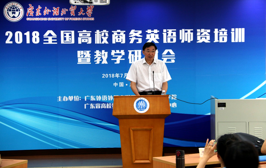 本网讯 7月9日至12日,商英学院联合广东省高校外语教师教学发展示范中心举办2018全国高校商务英语师资培训及教学研讨会,近20所高校的商务英语专业教师参加。研讨会邀请了校内外多位专家就商英专业建设发展的一系列重大问题献言献策,内容涉及商务英语专业发展和建设的一系列重大问题,如等级量表与商务英语测评、商英人才培养模式、智能时代创新教学模式的应用等。校党委副书记李云明出席开幕式并致辞。