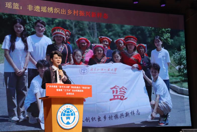 校团委“瑶篮”实践团是2023年暑期“三下乡”社会实践活动全国重点团队、全国优秀团队,广东省“百千万工程”突击队示范项目、省级重点团队。团队分享了项目的发展历程,通过开创“高校+基地+工坊+绣娘”的非遗乡村振兴新模式,解决非遗推广与非遗传承人收入等问题,以非遗瑶绣织出乡村振兴新样态。团队在实践中克服了交通不便与语言不通等困难,以青春之力,赋能瑶绣发展,助推瑶乡实现乡村振兴。