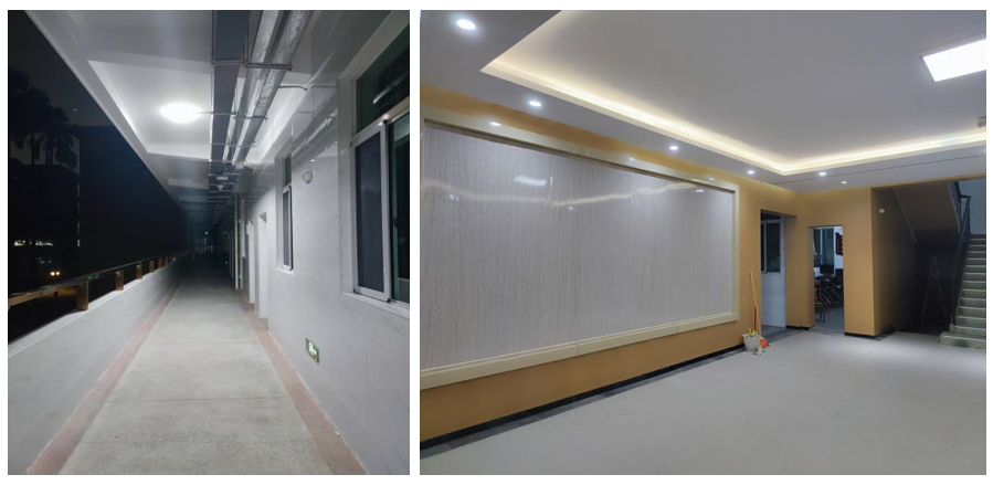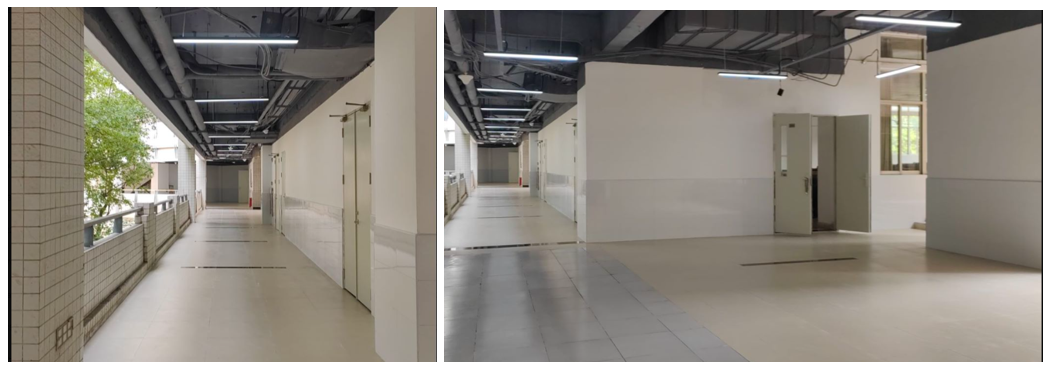 基建部在暑期对设施老旧的教学、办公场地进行修缮,保障了师生的教学、办公需求。白云山校区第四教学楼对原南北出入口门面装修升级,首层大堂整体进行翻新,公共走廊在实施墙面贴砖与线路整理后观感有了很大的改变。大学城教学区二期修缮延续了每年度对教学楼分批整体装修的思路,今年在教学楼E座开展公共区域修缮,包括天面防水补漏,走廊天花、墙面、地面整体翻新,卫生间重新改造等局部修缮。教学课室方面将原370平米教学楼B座301大课室分隔改造成多间教室和功能区,满足教学、考试等多功能使用。一系列的修缮项目既解决了师生日常遇到的飘雨、漏水、门窗故障等难题,消除了潜在安全隐患,也让教学楼与办公场地公共区域变得整洁明亮,楼宇的气质得以提升,为师生营造了良好的学习和工作环境。